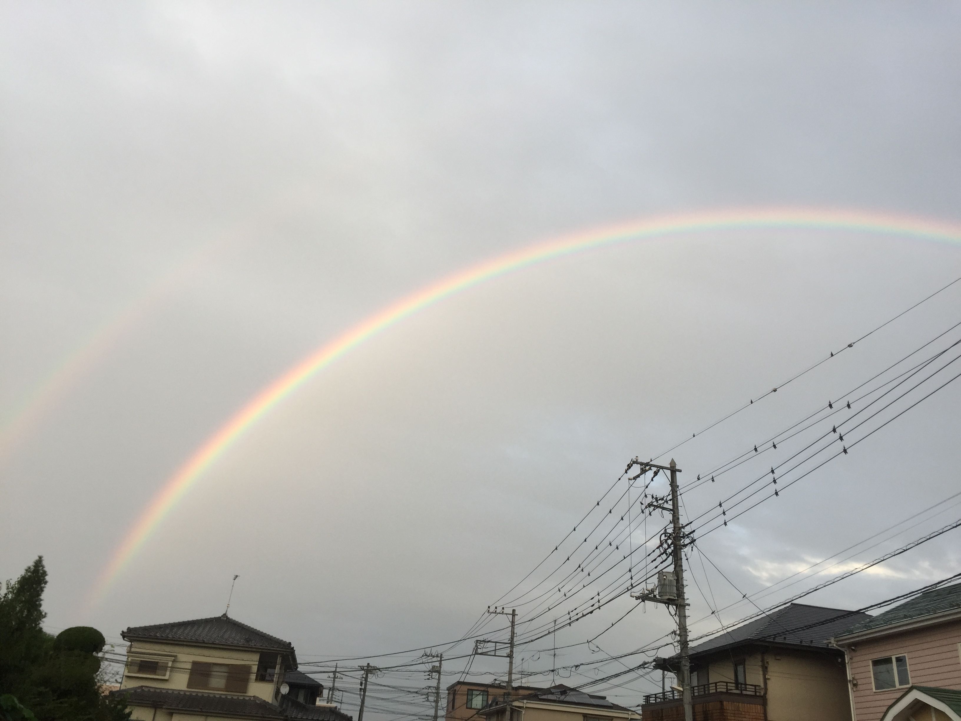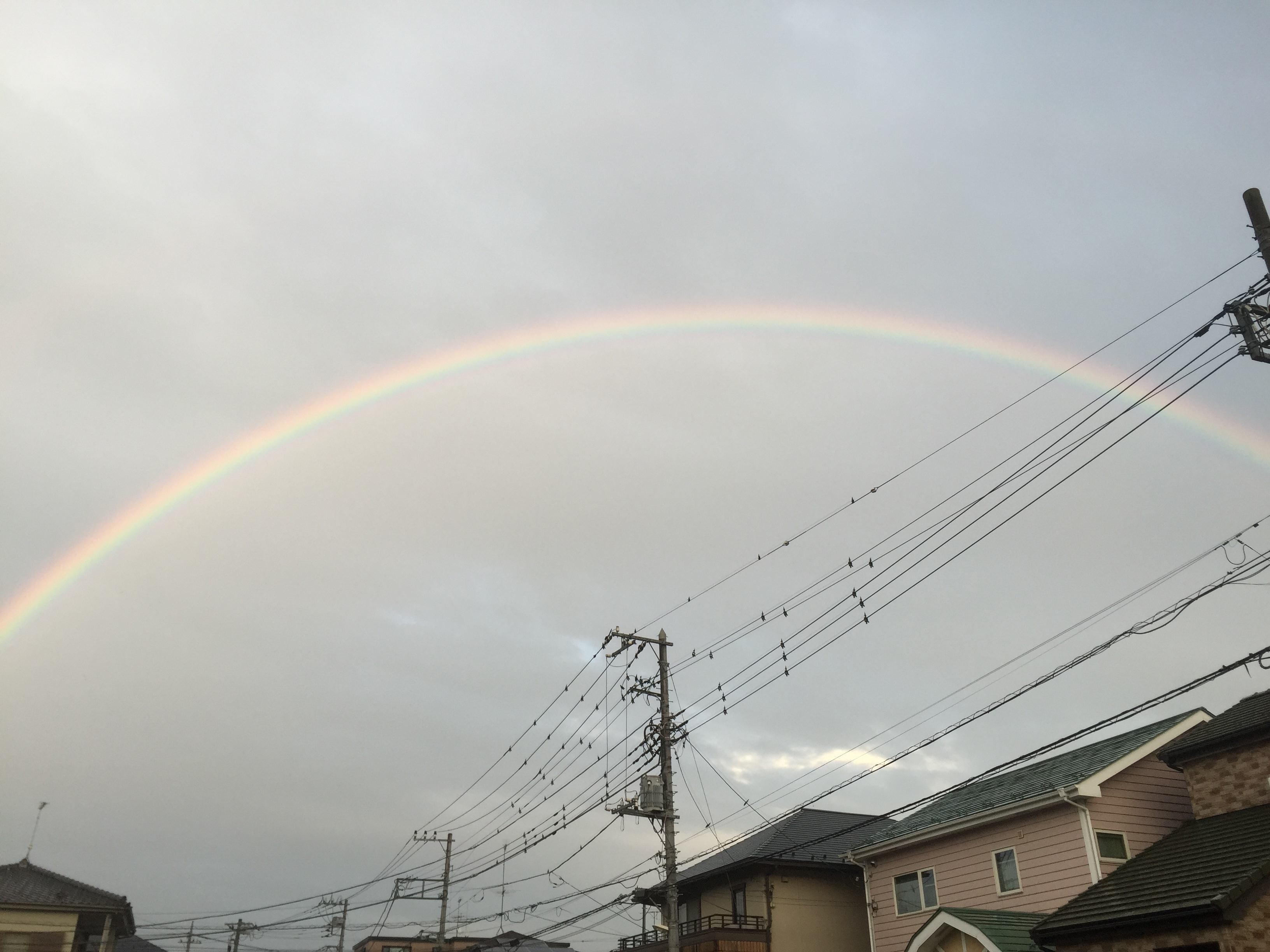そんな落ち着かない一日でしたが、夕方外に出たら見た事も無い大きな虹がかかっていてびっくり!