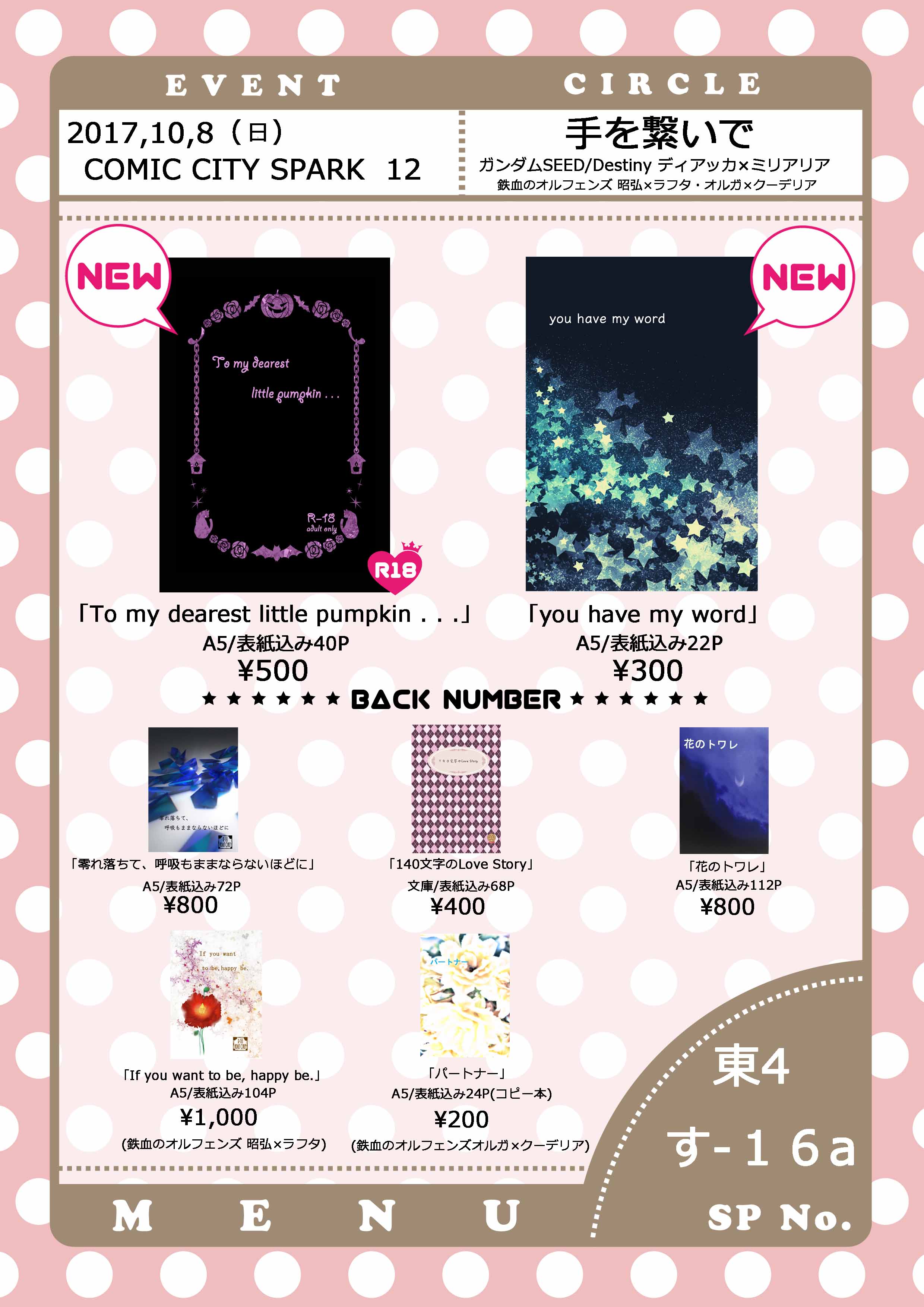 あと三日に迫ったので、お品書きをアップいたします!